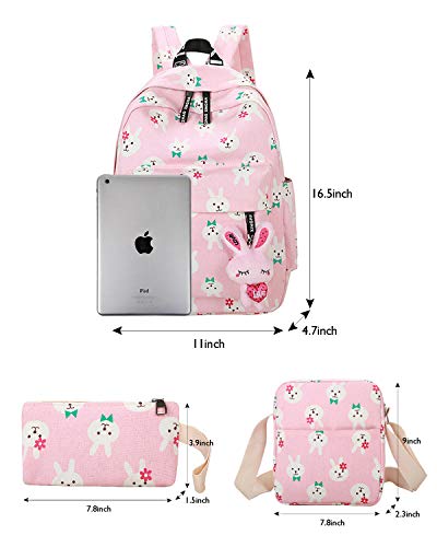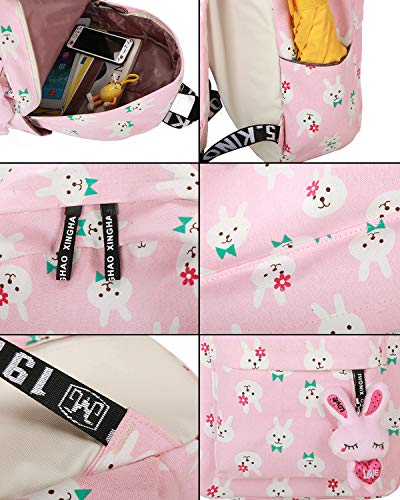 Details: ABage Canvas Backpack Set 3 Pieces Patterned Bookbag Laptop School Backpack, Light Pink2