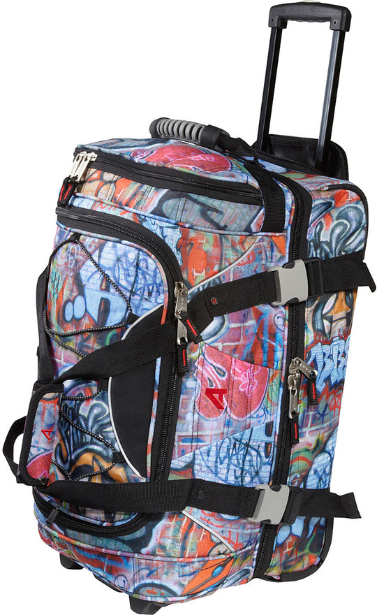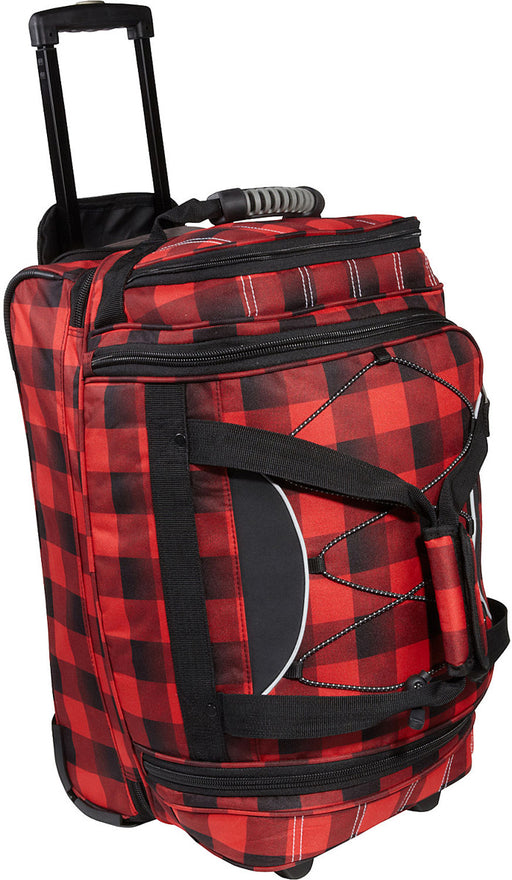 Make packing and traveling a little bit easier with this rolling duffel bag from Athalon. The Athalon 21" Equipment CarryOn Duffel w/ Wheels is made from polyester fabric and features a sporty design with contrast solid handles and trim, a hidden telescoping handle system, and smooth rolling in-line skate wheels for easy mobility. This rolling duffel bag has a roomy main compartment with a U-shaped top zipper closure and a separate drop bottom compartment with a trap door in the top area for easy access to contents in the bottom section. The divided compartments make it easy to pack and separate boots, clothing, and sporting equipment.