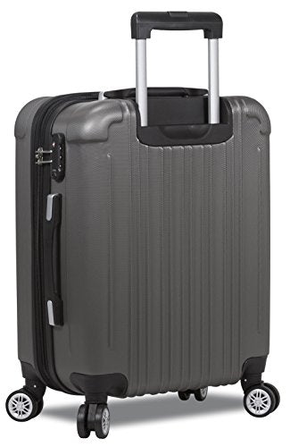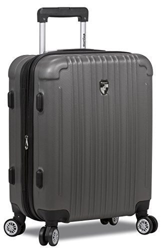- ABS shell construction, fully lined interior, dual interior compartments, large mesh zipper compartment, small accessory pocket, compression straps, expands 2-inch for more packaging capacity