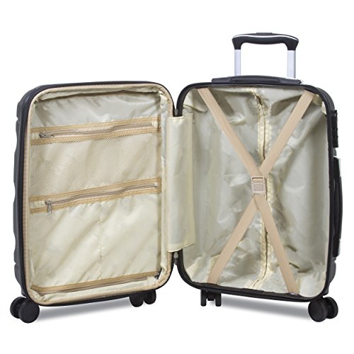 - Durable lightweight expandable ABS material with fully lined interior, built-in three digit combination lock, 360-degree spinner wheels and aluminum telescopic handle