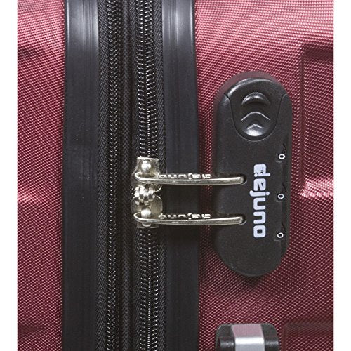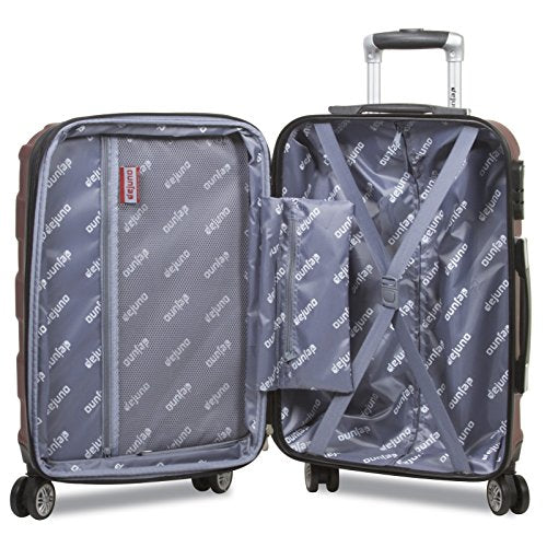 - ABS shell construction, expands 2 more inches for more packing capacity, fully lined interior, dual interior zipper compartment with large mesh zipper pocket and compression straps with buckle, built-in three digit combination lock, dual spinner wheel design for smooth 360 degree mobility, push-button telescopic handle, silver pewter hardware, top and side grip handles