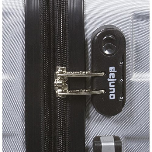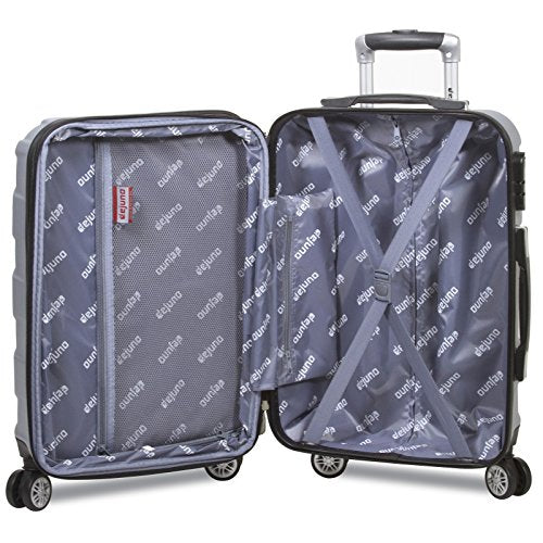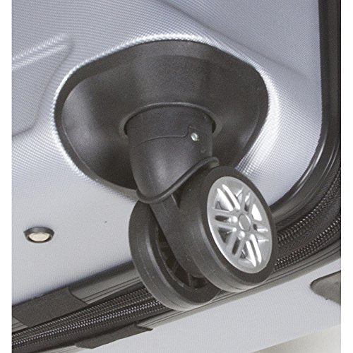- ABS shell construction, expands 2 more inches for more packing capacity, fully lined interior, dual interior zipper compartment with large mesh zipper pocket and compression straps with buckle, built-in three digit combination lock, dual spinner wheel design for smooth 360 degree mobility, push-button telescopic handle, silver pewter hardware, top and side grip handles