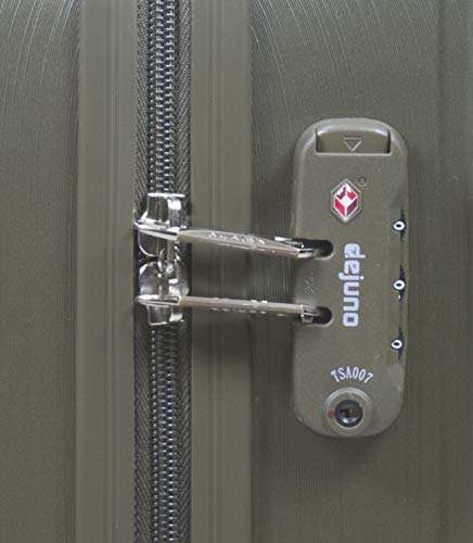 Details: The Dejuno collection is a sophisticated vintage trunk designed with in a scratch resistant material with stunning textured finishes. Ideal for the fashion forward traveler that likes comfort and utility with built in TSA accepted locks, aluminum trolley system and fully lined organizational interior.