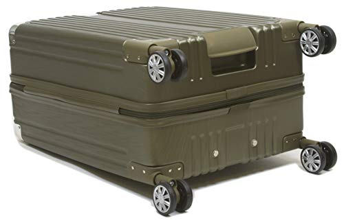 - Expandable scratch resistant polycarbonate shell and luxurious grey fabric interior with zippered divider, built-in TSA combination lock, deluxe 8-wheel spinner wheels and telescopic handle