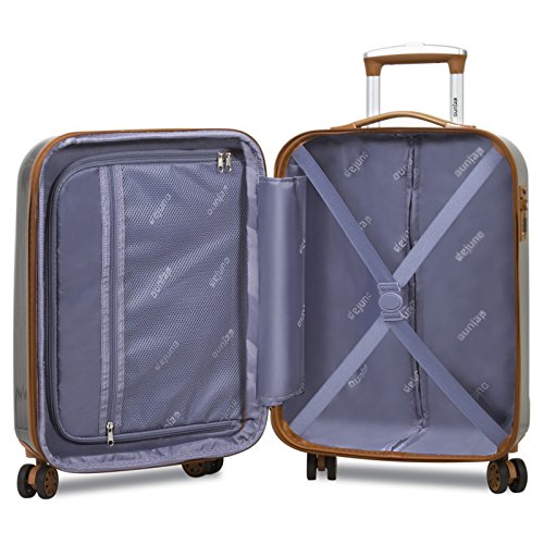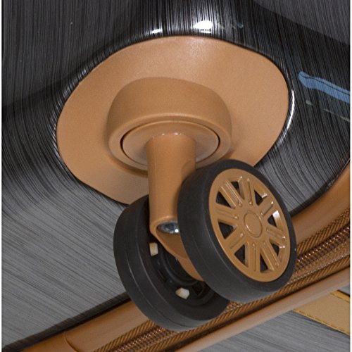 - Polycarbonate shell construction with high gloss Brush finish, expands 2 more inches for more packing capacity, fully lined interior, dual interior zipper compartment with large mesh zipper pocket and compression straps with buckle