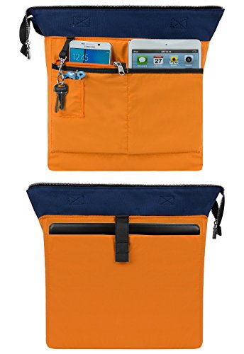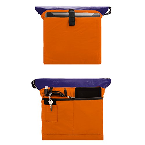 • The top zipper opens for a clear view of the internal contents which include ample space and a built-in padded tablet/ laptop compartment