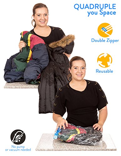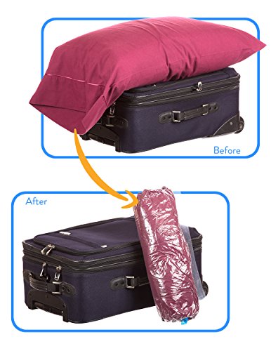 - FIT UP TO 3x MORE ON YOUR TRIP: Increase space in your suitcase or carry on with our premium space saving bags. To use simply place clothes, comforter, or fabric, close the bag sealer, and start rolling beginning form the zipper. The air will exit from the bottom of the bags until you fabric reaches maximum compression.