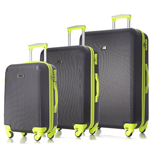3 Pc Luggage Set Durable Lightweight Hard Case Pinner Suitecase-Lug3-Ly71Val-Black/Yell