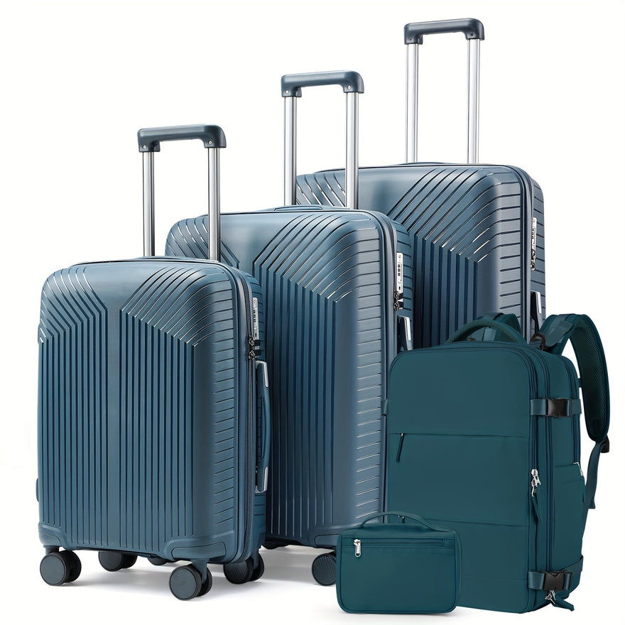 3 Pcs Black 20 Inch, 24 Inch, 28 Inch Travel Luggage Case Set With Minimalist Luggage Backpack & Toiletry Wash Bag, Lightweight Travel Suitcase Set
