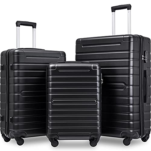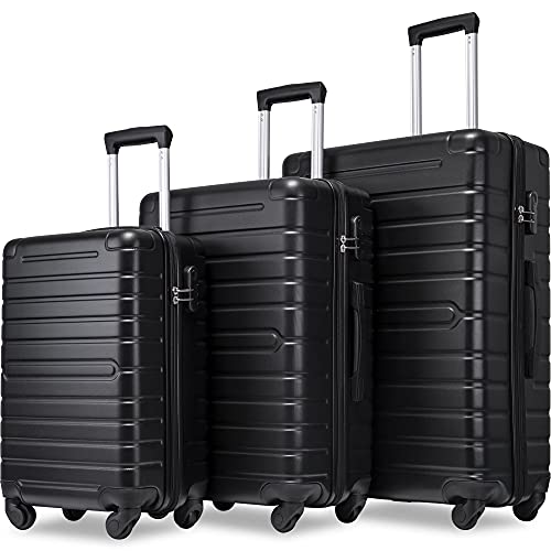 - 【3 PIECE LUGGAGE SET FOR TRIP】With different sizes of 20"(22" x 14" x 9"-Capacity 33 LBS), 24"(26" x 18" x 10"-Capacity 44 LBS), 28"(30" x 21" x 11"-Capacity 55 LBS), this 3 piece expandable luggage set offers a packing option for every occasion and is also ideal for sharing on a family holiday.