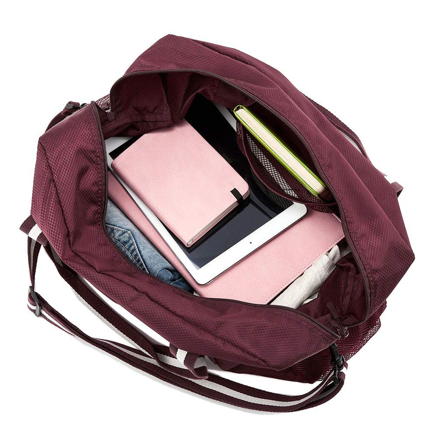 - INTENDED USE - Gym, Sports, Travel, Weekend, Luggage, Carry-on Bag, Shopping Bag, Beach Bag, Hiking and Camping. Suitable for women, men, teens and big kids, great idea as personal item for airline travel and emergency spare bag in the suitcase.