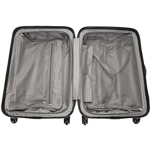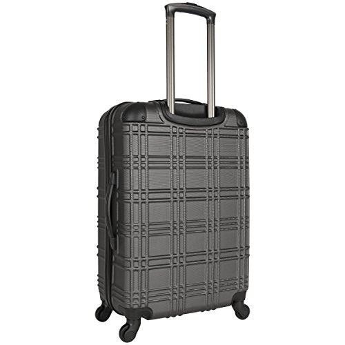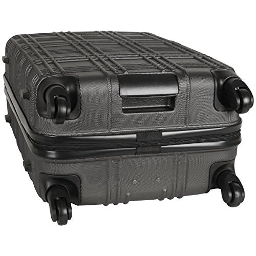 Details: 24" embossed pap (abs & polycarbonate blend) 4-wheel upright. 4-Wheel spinners allow smooth 360 degree rotation. Lightweight construction. Durable, dent-resistant pap exterior with molded corner reinforcement which provides optimum impact resistance. Tear resistant, fully lined interior. Features two-sided packing. Interior of main compartment includes a u-shaped mesh zipper pocket and a side zipper pocket for smaller items. Under the lid interior features a u-shaped zipper pocket, with a mesh zipper pocket for added storage. Flexible, padded top handle and molded bottom grab handle provides for easy lifting. Locking retractable trolley handle system. Overall dimensions (includes wheels): 27.0" H x 17.5" W x 11.0" D. Weight: 9.3 lbs.