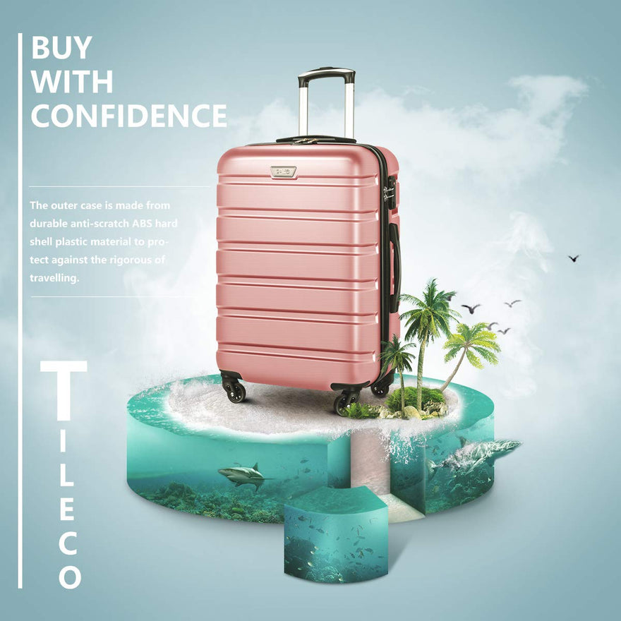- 3 piece luggage set 20 inch,24 inch,28 inch upright, can be stored one into another.100% ABS, Lightweight yet extremely durable abs material.