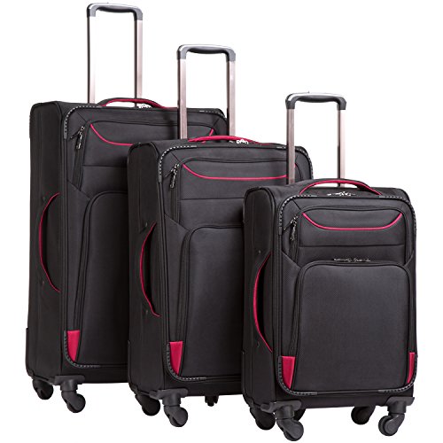Designed to provide travelers comfort, functionality, reliability, and peace of mind, this 3 piece suitcase set features one 28inch suitcase for consignment, one 24inch suitcase for checking in and one 20inch suitcase suitable for carrying onto the plane. Constructed with lightweight 1680D oxford cloth material, this luggage is durable, flexible and can absorb impact when under stress. Quiet airplane spinner wheels and an adjustable 3-level telescoping handle allow you to quickly maneuver in tight spaces and provide effortless movement. Make packing clothes easy with the interior fully lined with multi-use organizational pockets.