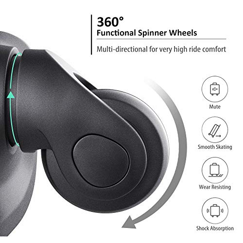 - [360 ° Spinner Wheels] EACH LUGGAGE IS Fitted with Quad Smooth-Glide Base 360 Degree Swivel Spinner Wheels for Easy Transportation Through Terminals, ON Concrete, Cobblestone and More