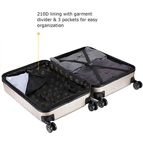 - 【TSA Locks & Multiple-pocket Lining Interior 】 TSA locks make suitcases more secure, allow only customs staff to inspect luggage without breaking locks.Lining made of 210D Nylon holds up endurable after trips. Lining interior features 1 big garment divider, 1 mesh pocket, and 2 elastic pockets for easy organization and convenience when packing.