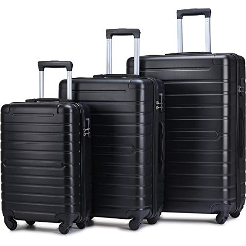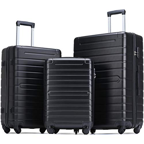 Flieks Luggage Sets 3 Piece Spinner Suitcase Lightweight 20 24 28 inch (Classic Black)