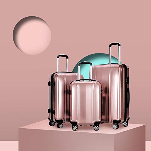 Goplus 3Pcs Luggage Set, Hardside Travel Suitcase, 20" 24" 28" ABS + PC Travel Trolley Case w/Coded Lock, 360° Spinner Wheels Lightweight Suitcase