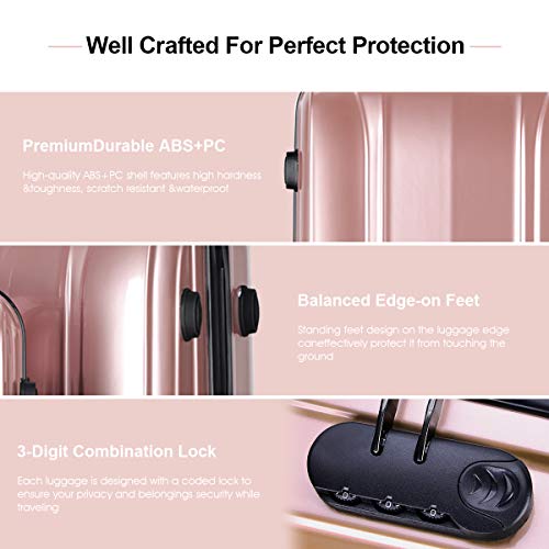 • 👒 Sturdy Construction: Mainly crafted by lightweight and durable ABS+PC hard shell, our luggage set features high hardness and toughness, scratch resistant and waterproof. It is sturdy enough to last long time without being damaged easily.