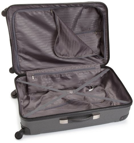 Details: Multi-directional 4-wheel spinners allow smooth, 360 degree movement over any rough surface for complete mobility free-weight rolling, relieving any pressure from your arms while on the move. Lightweight construction helps you adhere to airline weight restrictions to avoid unneeded airport fees. Durable ABS hard-shell exterior with fully lined interior. Molded corner guard reinforcements for absorbing and deflecting shock for maximum impact resistance. Features self-repairing coil zippers for long-lasting use. Fully lined interior main compartment features garment restraint straps to hold your clothes and contents in place and a large zipper accessory pocket. Front lid features a large u-shaped zipper pocket allowing for double sided packing. Convenient and flexible top and side handles allows for easy lifting and maneuvering. Four molded side feet allow luggage to stand upright on its side. Sturdy locking retractable push-button telescopic trolley handle conductive for simple, one-handed use. Size: 29.5" h x 20.5" w x 11.75" D, packing dimension's: 28.0" h x 19.0" w x 10.25" D, weight: 9.35 lbs, 10 year limited warranty.