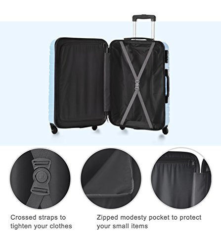 This 3 piece suitcase set have one 28inch , one 24inch for checking in and one 20inch suitcase suitable for carrying onto the plane.