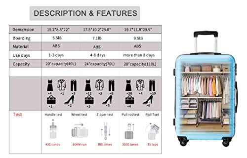 Approx. Dimension(including wheels): 20inch 21" x 15" x 8" , 24inch 26"x18" x 10" , 28inch 30" x 20" x 12".