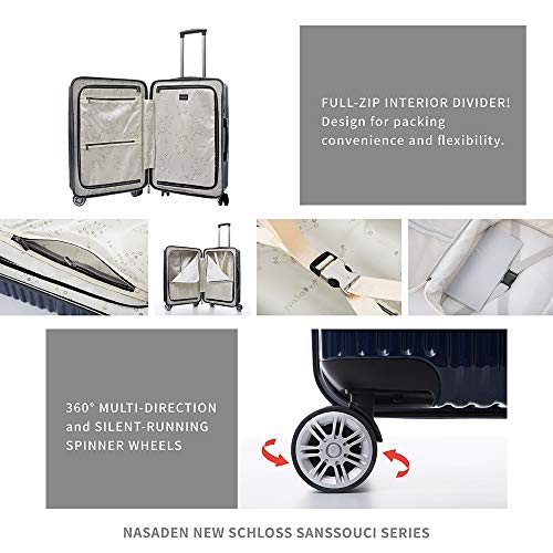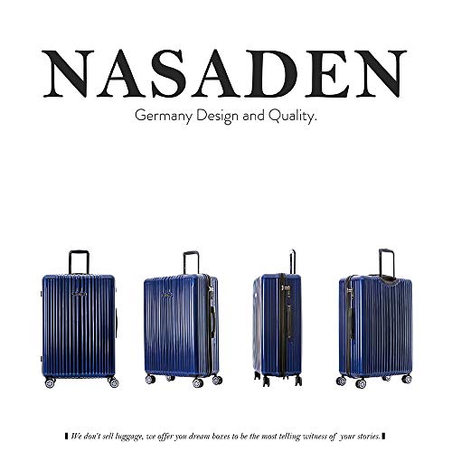 Details: 【GERMAN BRAND SUPERIOR QUALITY】 NaSaDen travel suitcase originated in Germany. The soul of NaSaDen is known for its meticulous and precise quality control. The baggage is made with durable and lighter PC and ABS material, with stain-resistant, water-repellant,scratch-resistant, high-tensile-strength zipper pulls provide lasting durability. SGS approved quality tests as following: 30 KG Loading Test 32KM Rough Road Running Test 1000 Times Trolley Extend Test 2000 Times Handle Shock Test 90 CM Falling Test