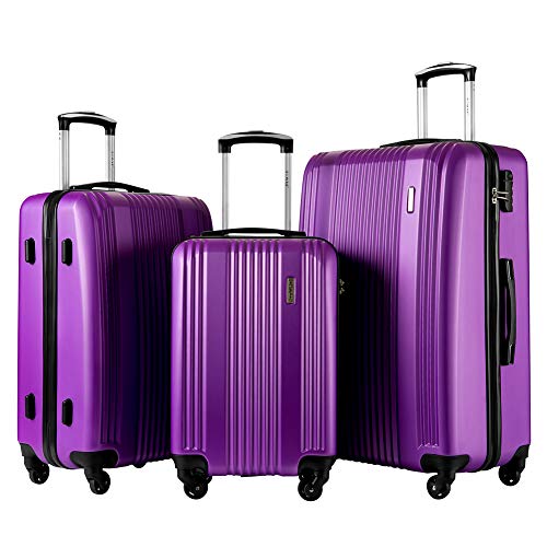 TBWYF Luggage Set 3 Piece Set Suitcase set Spinner Hard shell Lightweight (purple)