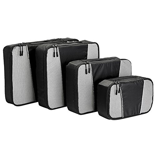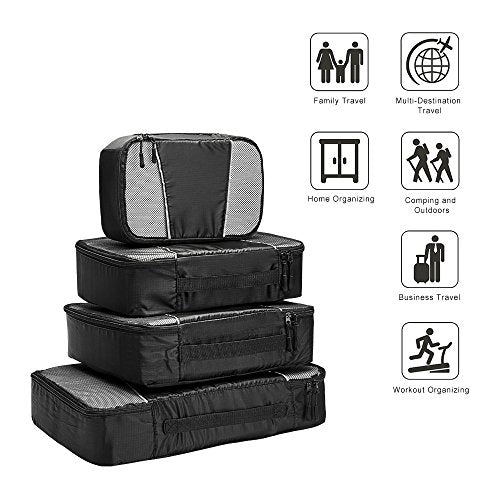 - [ Various Sizes to Meet Your Needs ] 4 Set travel packing cubes includes: extra large17"x 12.6"x 4", large 14"x 12.6"x 4",medium 14"x 9.8"x 4",small 11"x 6.7"x 4".Large interior volume holds all your travel accessories.