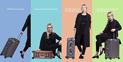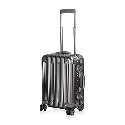 Travelking Aluminum Luggage Carry On Spinner Hard Shell Suitcase Lightweight Metal Suitcases (Grey,