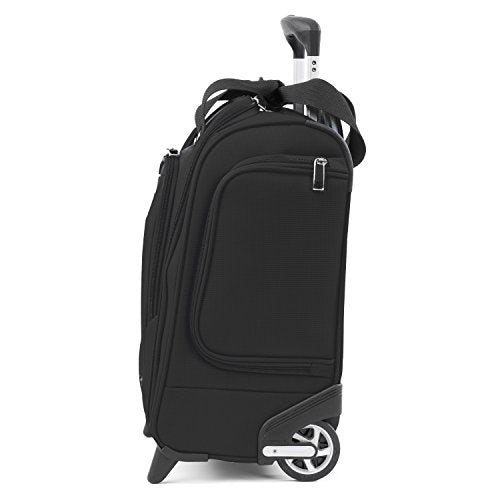 Details: Like traveling with a personal assistant, the Travelpro Rolling UnderSeat Carry-On is so organized, you don't have to be. Numerous, specially-designed pockets include a padded laptop or tablet sleeve, removable plastic compartment for cosmetics, office supplies or accessories, quick-access external pockets and a roomy interior with large zippered opening. Designed to fit under the seats of most major domestic airlines, this compact carry-on is your ideal onboard traveling companion, flying solo for a quick turnaround or playing back up to your other luggage. Lightweight PowerScope Lite handle reduces wobble, inline skate wheels keep you rolling smoothly and a rear stacking strap gives you the flexibility to stack this bag atop another rolling bag for hands-free travel. This Fit to Fly carry-on bag has been sizer been tested to accommodate overhead bin space on most major US airlines. Fully expanded Carry-On may not meet airline restrictions. Backed by Travelpro's Limited Lifetime Coverage plus a new and expanded "Trusted Companion Promise", which covers the cost of repair for damage from airline or other common carrier for 1 year. Also, with our new Trusted Companion Promise, we will even reimburse shipping costs when you send your bag to us for warranty repair or replacement during that 1st year.
