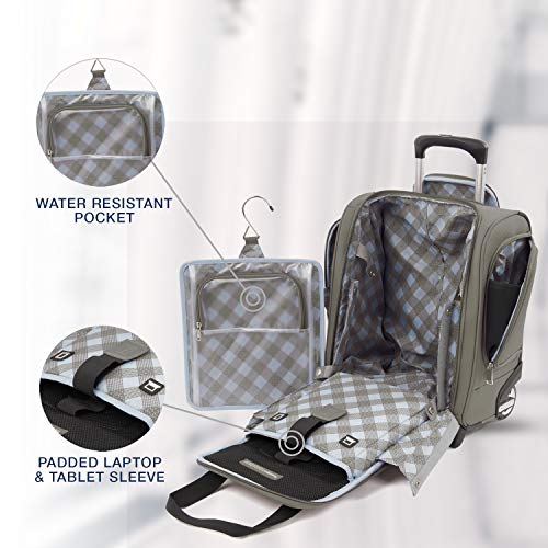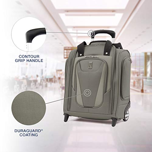 Details: Like traveling with a personal assistant, the Travelpro Rolling UnderSeat Carry-On is so organized, you don't have to be. Numerous, specially-designed pockets include a padded laptop or tablet sleeve, removable plastic compartment for cosmetics, office supplies or accessories, quick-access external pockets and a roomy interior with large zippered opening. Designed to fit under the seats of most major domestic airlines, this compact carry-on is your ideal onboard traveling companion, flying solo for a quick turnaround or playing back up to your other luggage. Lightweight PowerScope Lite handle reduces wobble, ball bearing wheels keep you rolling smoothly and a rear stacking strap gives you the flexibility to stack this bag atop another rolling bag for hands-free travel. This Fit to Fly carry-on bag has been sizer been tested to accommodate overhead bin space on most major US airlines. Fully expanded Carry-On may not meet airline restrictions. Backed by Travelpro's Limited Lifetime Coverage plus a new and expanded "Trusted Companion Promise", which covers the cost of repair for damage from airline or other common carrier for 1 year. Also, with our new Trusted Companion Promise, we will even reimburse shipping costs when you send your bag to us for warranty repair or replacement during that 1st year.