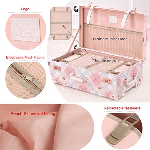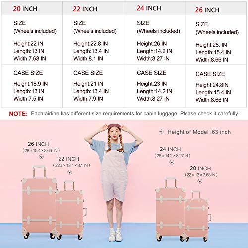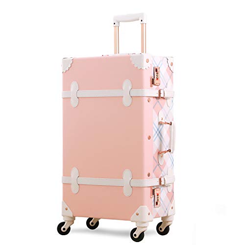 Unitravel Vintage Suitcase Retro PU Trunk Rolling Spinner Luggage for Women, Girls