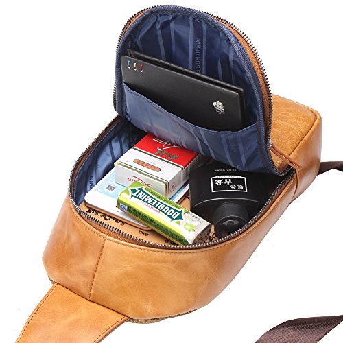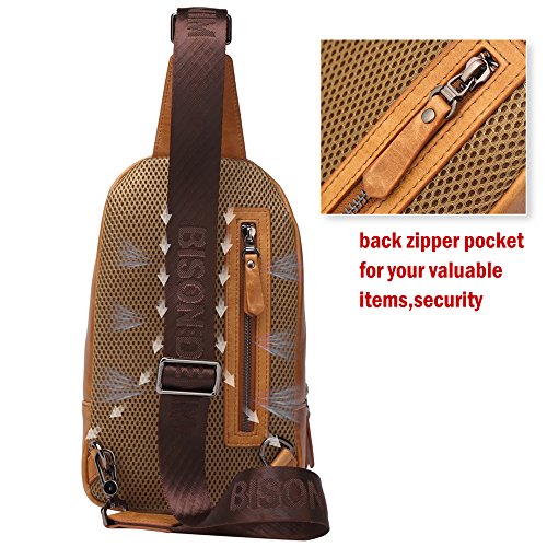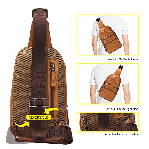 Bison Denim Mens Genuine Leather Sling Backpack Outdoor Shoulder Chest Pack Unbalance Crossbody Bag