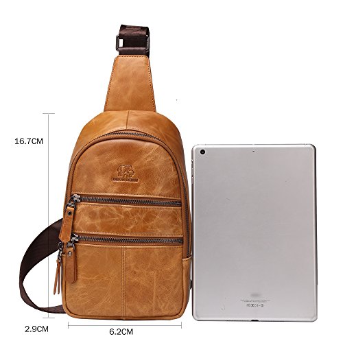 • Product dimensions: 17.5x31x7cm / 6.89x12.21x2.76 inch, The shoulder bag can fit a 10" ipad easily, This genuine leather chest bag is not a large backpack , but it is a great size to take to a day trip or shopping. So Please kindly refer to the size chart before placing order. thank you