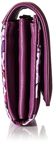 Details: Signature cotton is colorful and lightweight. Faux leather front flap. Provides rfid protection for credit and debit cards. Exterior zip pocket on back. Two compartments with 12 credit card slip pockets, two large bill pockets and a zip pocket. Hidden pin snap closure.