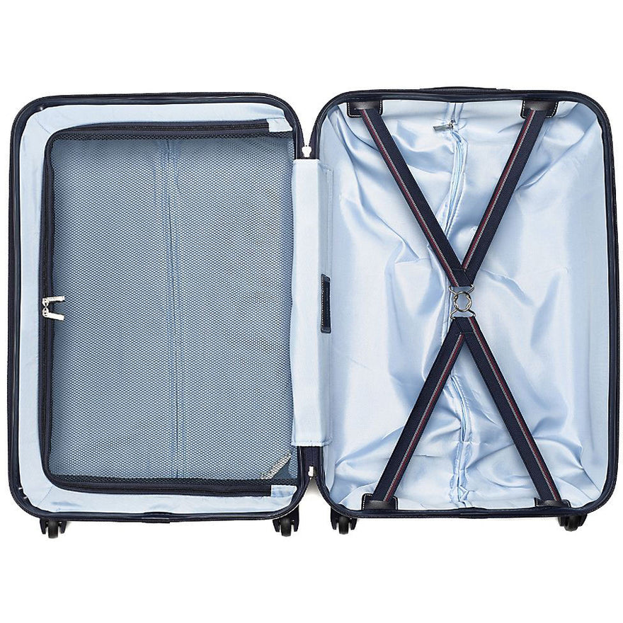 The Tommy Hilfiger Lochwood series is a durable composite Polycarbonate hardsided luggage. Complete with the Signature Tommy Stripe down the center, Spinner wheels and has a fully lined interior.