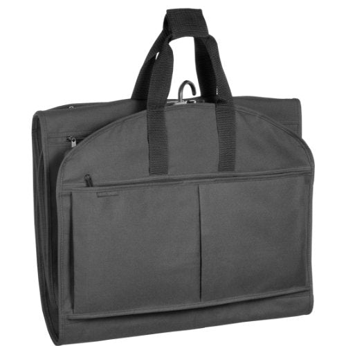 Details: No wrinkles, no worries. Easy to carry-on, clothes stay neat and wrinkle-free in this lightweight, tri-fold garment bag with WallyLock hanger clamp. The Wally clamp holds up to six garments and accepts any type of hanger so clothes won't fall to the bottom of the bag. No folding, rolling, or special packing skills required. Just grab from your closet and place right into your garment bag – ready for travel. Durable, polyester fabric is water repellent, providing all weather protection. Superior construction guarantees long-lasting performance. This garment bag will tri-fold to make it easy to pack and transport suit and dress length clothing. Handles fasten together for easy carrying, and wrap around the trolley system of luggage for effortless travel. Looking for something that can carry it all? This travel bag also comes with three pockets for packing shoes, pants, sweaters and other accessory items. Pockets are large enough to fit a toiletry kit. Great for cruisers, savvy globetrotters, and anyone who want to travel wrinkle-free! Conveniently fits in the airplane’s overhead bin and can be used as a carry-on item for most airlines. Patent No. D499,548. Hanger clamping system design mark is registered in the U.S. Patent and Trademark Office. Three year limited manufacturer’s warranty. Dimensions: 52L x 22W x 3D (inches) Folded Dimensions: 18L x x22W x 9D (inches)*Length and Depth is approx and dependant on the amount of clothing packed.