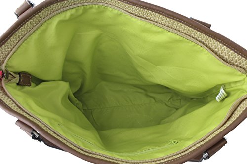 Details: Lily Bloom Nessa tote with Tropical Pineapple print features a top center zip closure and five exterior slip pockets. Recycled Polyester with Vinyl Trim. Dimensions: 12"H x 18"W x 3.5"D.