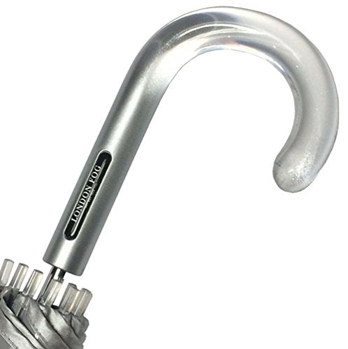 Details: The London Fog clear umbrella has an extra-large dome shaped canopy providing 360 degrees of unobstructed view in the rain. Umbrella features classic crooked acrylic handle, manual open and 52 inch arc coverage.
