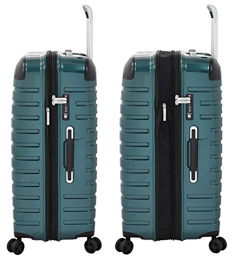 Details: Locking push button handle system with aluminum channels for added strength. Deluxe 8-wheel multi-directional 360 degree spin technology. TSA approved locks, flush mounted for strength. Side feet and corner guards for extra protection. Interior has zippered dividers and tie down straps. Expands 2" for additional packing capacity. Full iconic London Fog plaid lining interior as well as custom London Fog hardware. Limited lifetime warranty.