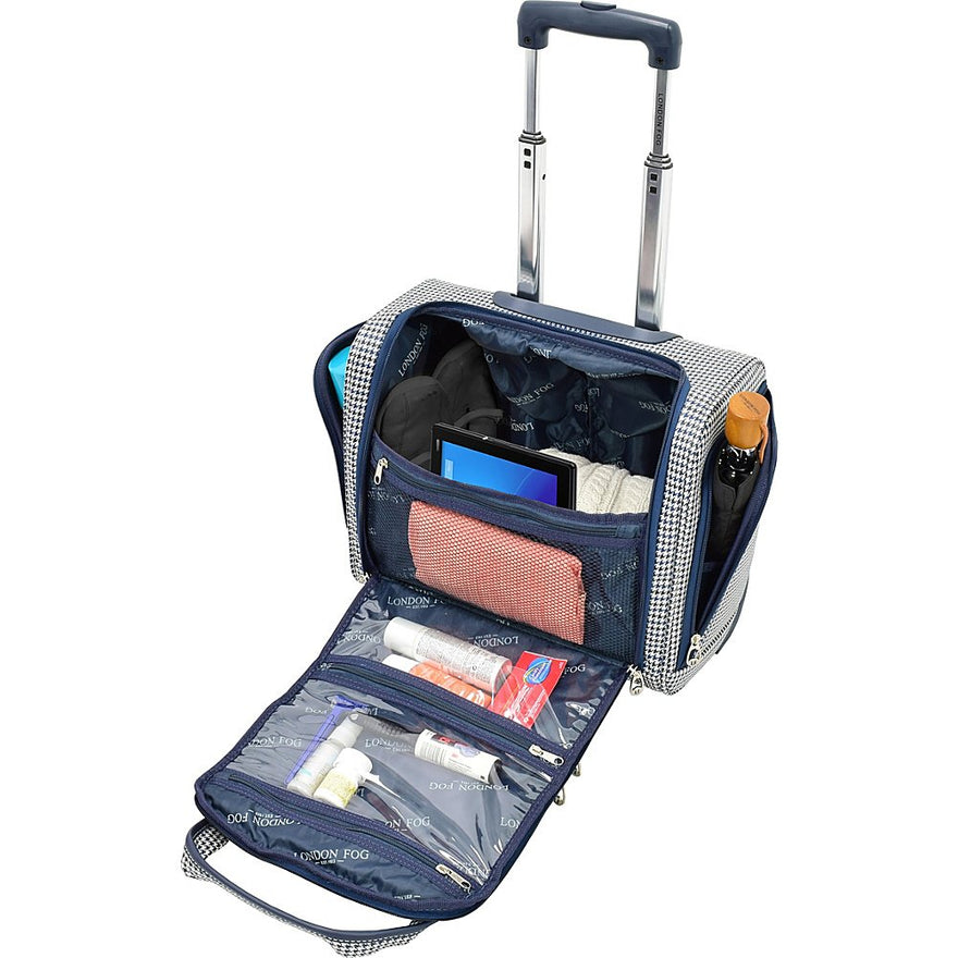 Details: The London Fog 15" Wheeled under the seat bag is durable but lightweight and is the perfect bag for your travels. special features - Telescoping Handles. number of wheels - 2. wheel type - In-Line