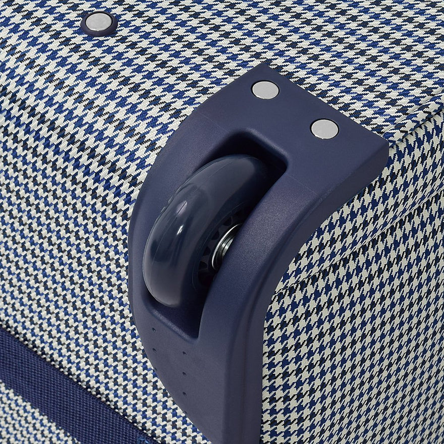 - Hidden locking aluminum handle tubes have channels for added strength. In-line skate wheels offer a smooth ride. Exterior zippered pockets for additional packing.