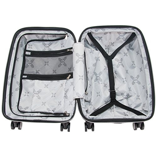 Details: 20" Embossed Brushed ABS Expandable 8-Wheel Carry-On Luggage. 8-wheel spinners allow for effortless 360 Degree navigation allowing you to get to where you're going faster. Lightweight construction helps you meet airline weight restrictions, to avoid unnecessary airport fees. Expands 2.0" for additional packing space. High-strength geo molded ABS exterior with brushed texture, a tear-resistant, fully lined interior and color contrast zippers. Roomy main compartment interior consists of secure garment straps with buckle closure and a side zipper pocket for smaller items. Under-the-lid section features a large u-shaped zipper pocket with two additional zipper pockets. Kissing sliders made with zipper pullers that fit a TSA lock or pad lock for ultimate security. Comfortable, flexible top handle and bottom grab handle allows for easy lifting into overhead bins or off the conveyor belt. Retractable, trolley handle retracts to be 41" tall with a locking push button mechanism. Manufacturer 10 Year Limited Warranty. Overall Dimensions (includes wheels): 22.0" H x 14.0" L x 10.0-12.0" D (includes wheels). Weight: 7.2 lbs.