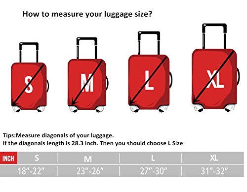 - Fit quickly and easily in seconds. Durable and washable, 4 sizes available to fit almost any luggage. S: fit 18-22 inch luggage, M: fit 23-26 inch luggage, L: fit 27-30 inch luggage, XL: fit 31-32 inch luggage.