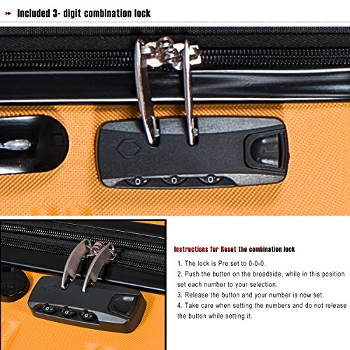 Details: Designed to provide travelers comfort, functionality, reliability, and peace of mind, this 3 piece suitcase set features one 28inch suitcase, one 24inch suitcase for checking in and one 20inch suitcase suitable for carrying onto the plane. With Lightweight durable ABS hard shell material, it makes the luggage durable, flexible and absorbs impact when under stress. Quiet airplane spinner wheel system and an adjustable 3-step telescoping handle system allow you to maneuver in tight spaces and provide effortless movement. This luggage allows you to pack more while avoiding the excess weight surcharges imposed by most airlines. Unique 4 corner riveted protective shells not only protect your belongings, but also enhance overall durability. An elegant pattern hides any potential scratches or scuffs from your journeys. With the 3-digit combination lock you secure the contents from thieves. The interior is fully lined with multi-use organizational pockets make it easy for packing clothes.