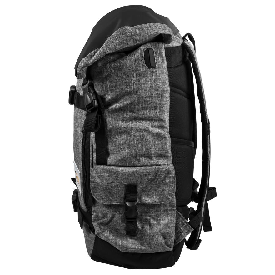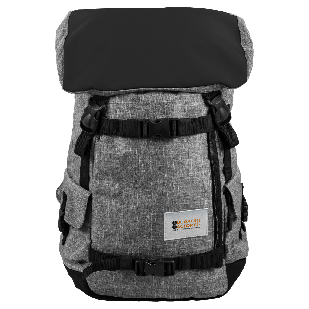 - The Luggage Factory Backpack™ will tote all your gear whether you’re hitting the trails, commuting to work, or heading to the airport for your next trip. With a dedicated laptop and tablet sleeve, secret stash pouches, RFID-lined pocket, and constructed from durable, water-repellent snow fabric, this pack has got you covered in any situation! Bring along your jacket, blanket, yoga mat or even skateboard with the front strap buckles. A luggage pass-through handle, ergonomic back panel with memory foam, adjustable padded shoulder straps and sternum strap makes carrying this bag a walk in the park.