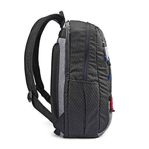 Details: This American Tourister backpack is made of ultra-lightweight 600d shiny polyester construction. It features a custom American Tourister hardware; zipper pulls, rivets, and patches. The s-curve padded shoulder straps with air channel back with lumbar support.
