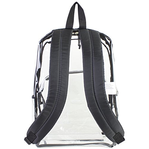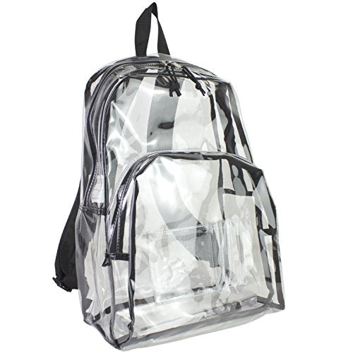 Details: The Eastport Clear Backpack provides plenty of storage space for books, school supplies and more. The pack's straps are adjustable to fit most children. Each strap is padded for comfort. The Eastport Backpack is made of 100 percent polyester and is clear, so you can easily find the items stored inside. A front pocket and the main pocket seal shut with heavy-duty zippers. A pen holder is built into the front pocket. The polyester backpack is small enough for a child to carry and big enough for an adult