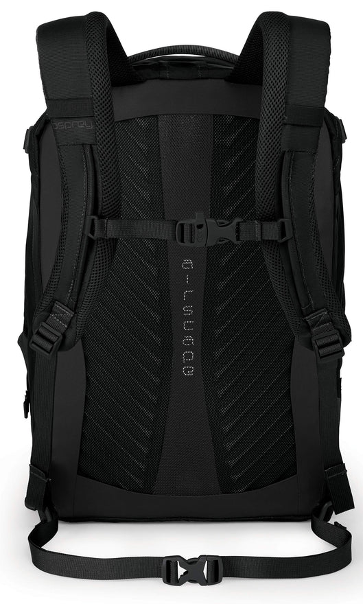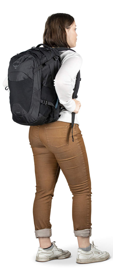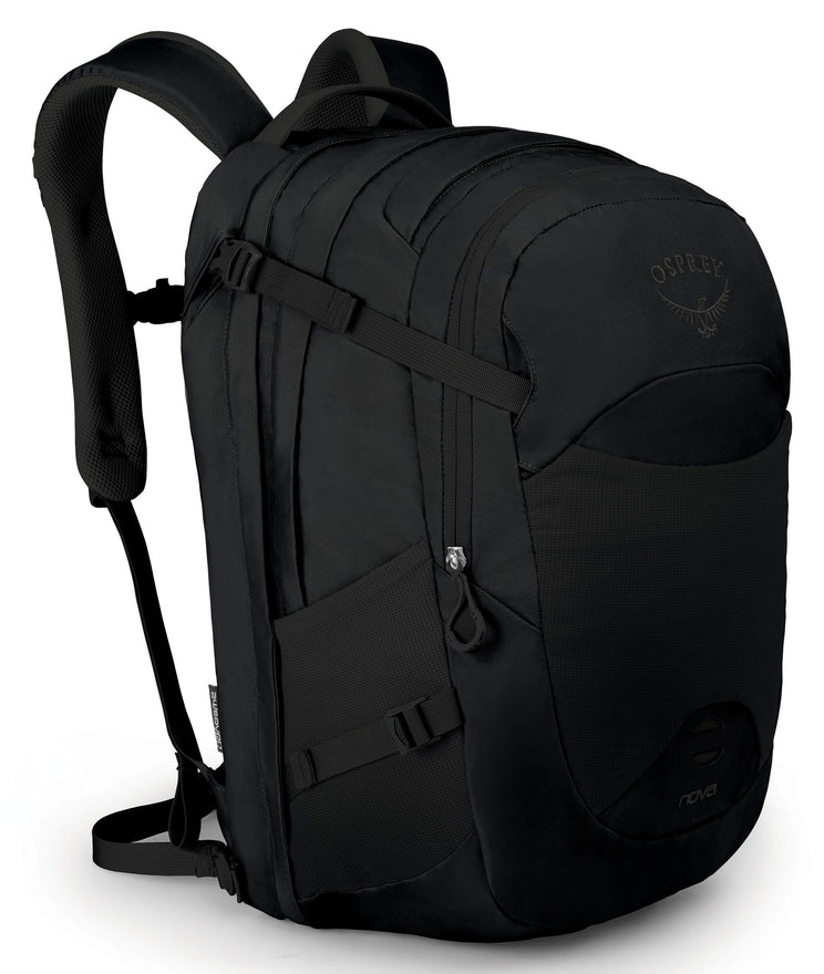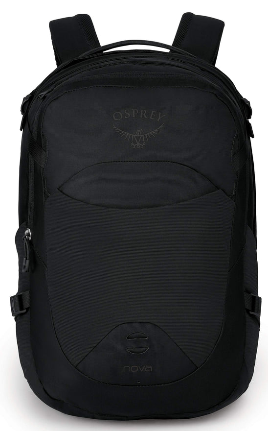 Details: The Osprey Nova women's Laptop Backpack gets the same attention to detail as our most technical packs. The Nova daypack offers durable fabrics and contemporary aesthetics in a comfortable package for everyday use. It also has travel friendly features such as the TSA airport approved laptop sleeve that can fit up to a 17" Laptop along with a padded tablet sleeve. The front panel organization pocket keeps all your small items handy while the large main compartment has plenty of room for all your essentials. Additionally, dual stretch mesh water bottle pockets make sure you stay hydrated for a busy day on the go while the internal organization helps keep things organized. While there are upper side compression straps to keep your pack streamlined, you can tuck them away in the hidden garage pocket when not in use. It can also be used as a bike commuter pack with the blinker light attachment and a heat embossed scratch-free slash pocket for your sunglasses.